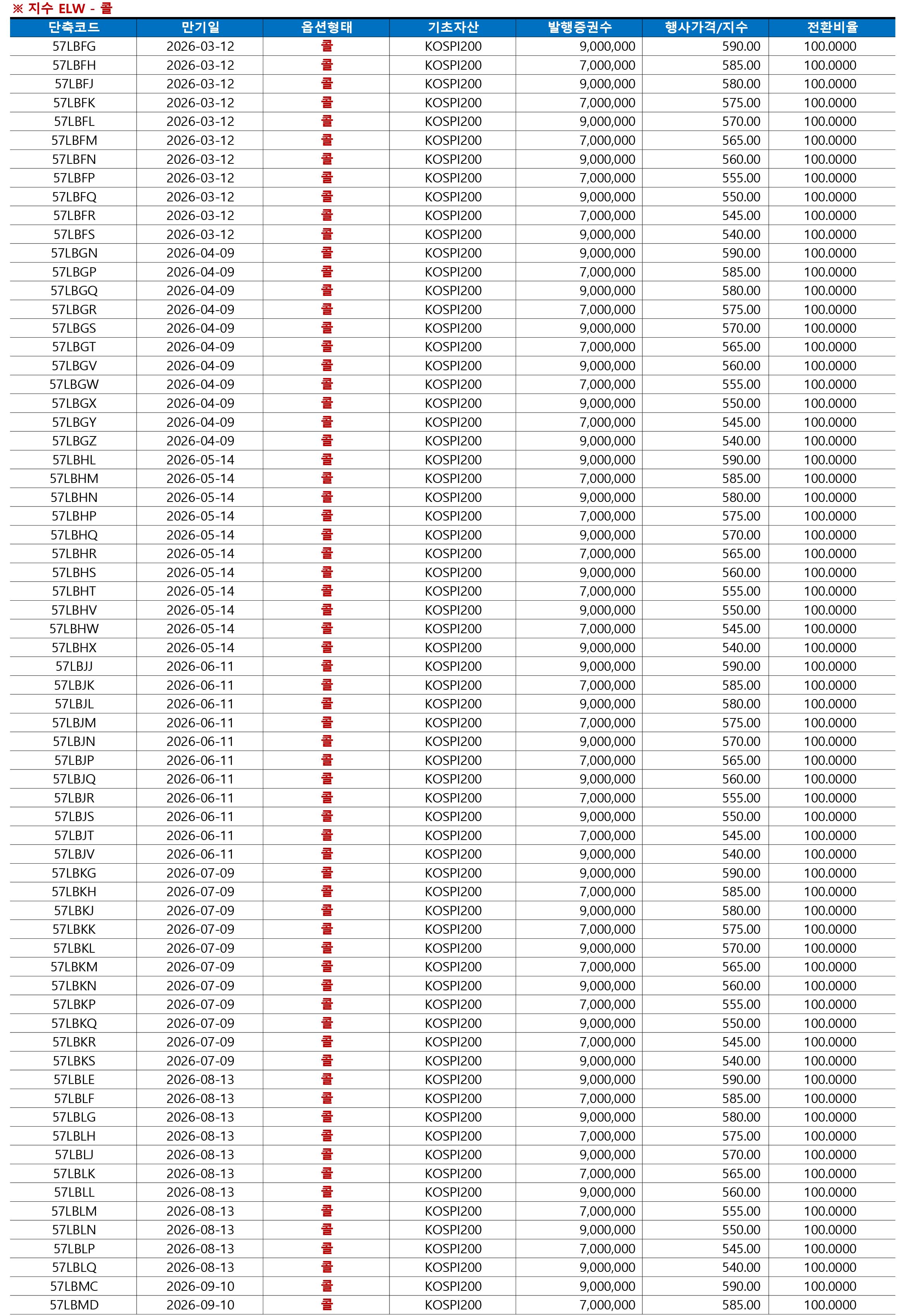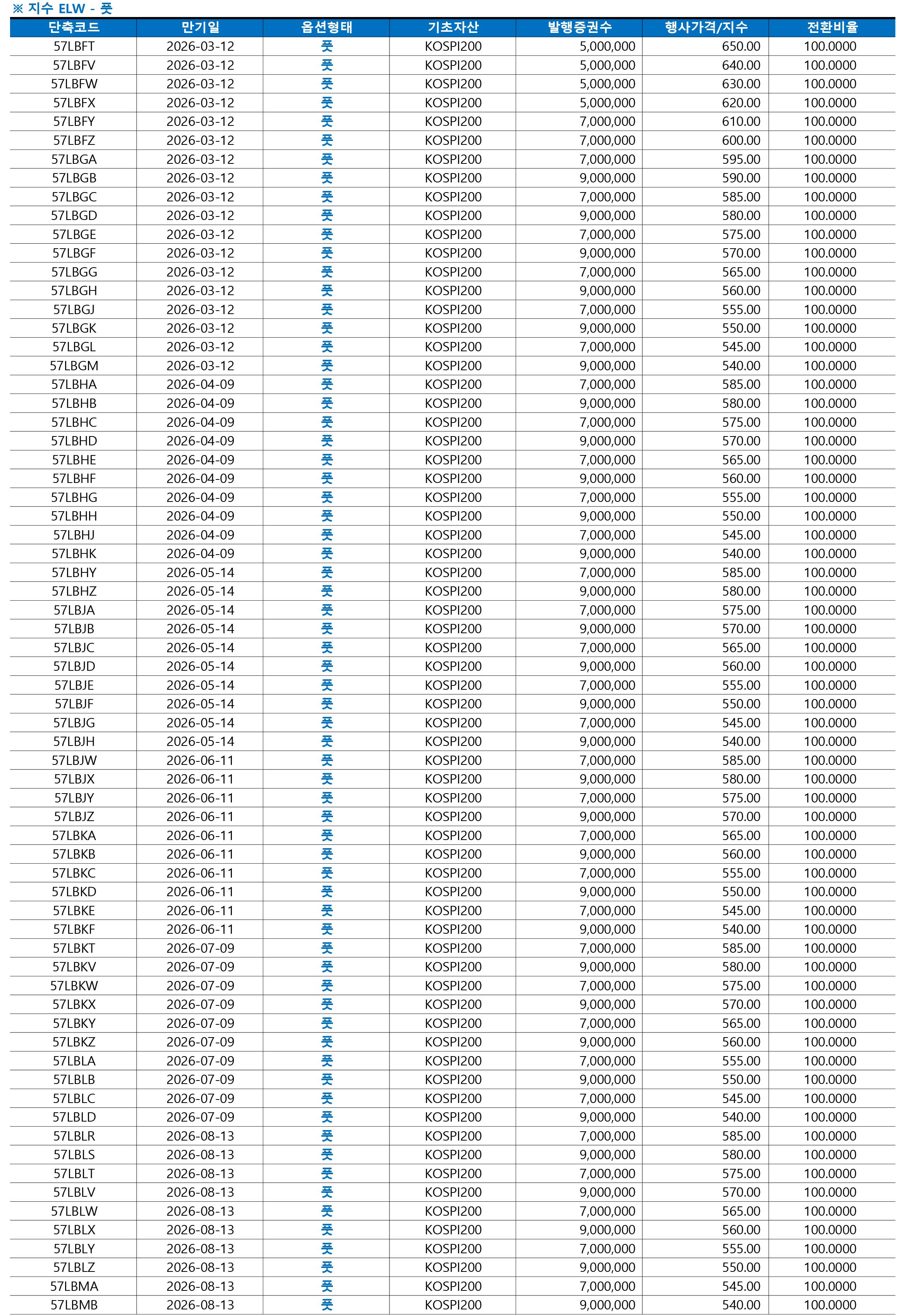 12/17(수) ELW 신규상장 안내 (155종목)_지수형
